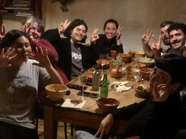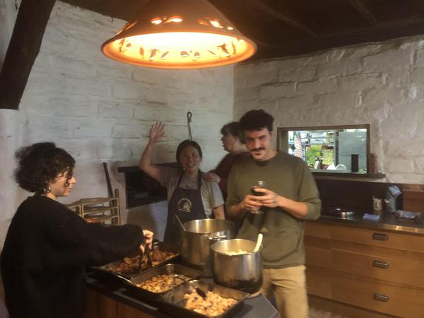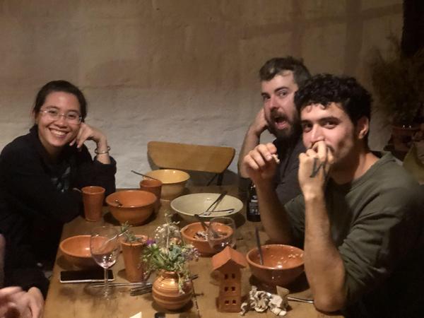 In der Mitte Estella (aus Taiwan), die hier soeben ihre traditionelle Mahlzeit für die vielen hungrigen Freunde serviert.