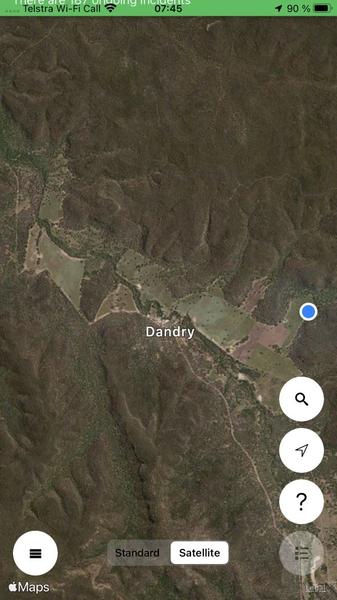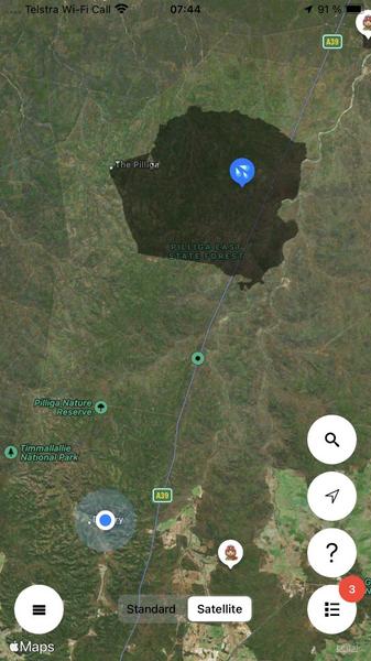 Das Bild der App zeigt die groben Umrisse der Farm und wo ich mich mit meinem Wohnwagen befinde, während ich die App benutze. Die Fläche der Farm umfasst etwa 5tausend Hektar.