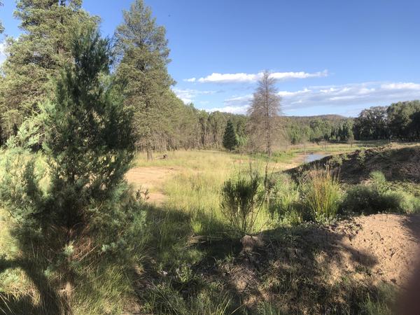Über dem Schatten der Bäume zeigt sich der erste Zipfel des verheißenden Teichs. Spannung und Vorfreude steigt!