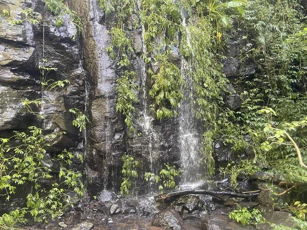 Diese Felswand ist teilweise von Ranken überwuchert. Ein feuchtwarmes Klima und das entsprechende Wasser im Boden, erlauben für eine explosionsartige Entfaltung der Pflanzen.